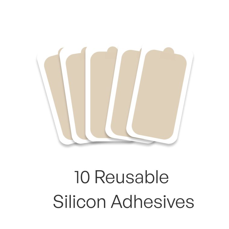 Made from medical grade silicone, these light, hypoallergenic Adhesives secure your device in place and won’t leave marks on your back. Included with in the box.