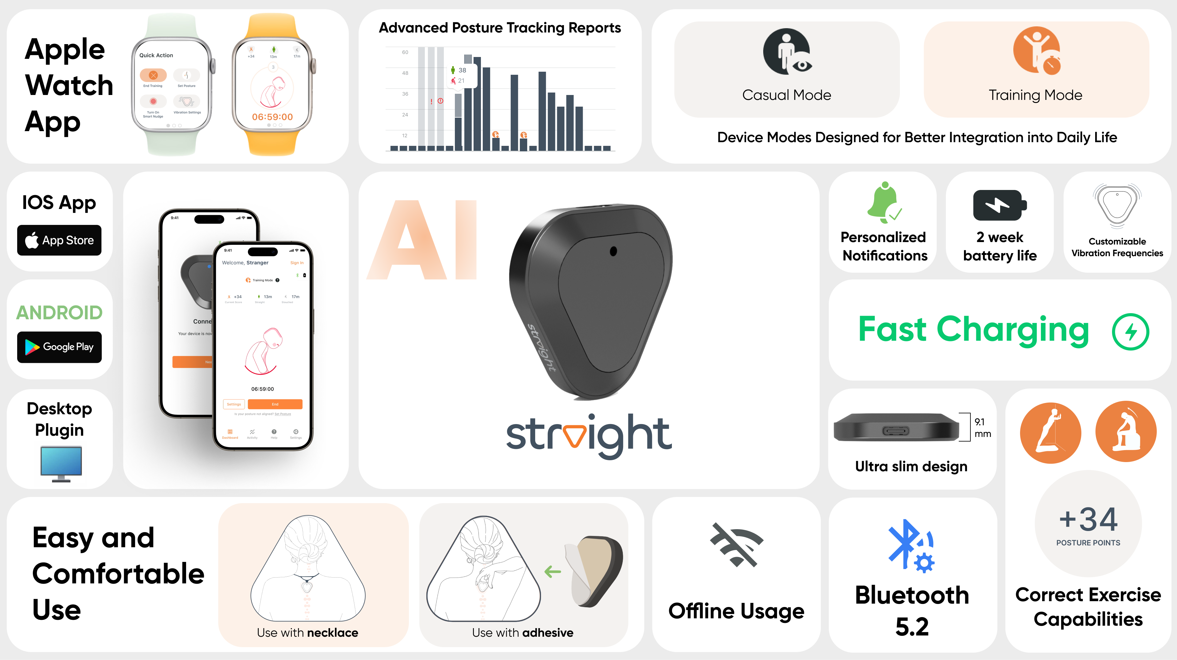 Straight gives visible results in a short time. Within days, you will experience improvement in your posture, eliminating discomfort and pain associated with poor posture.